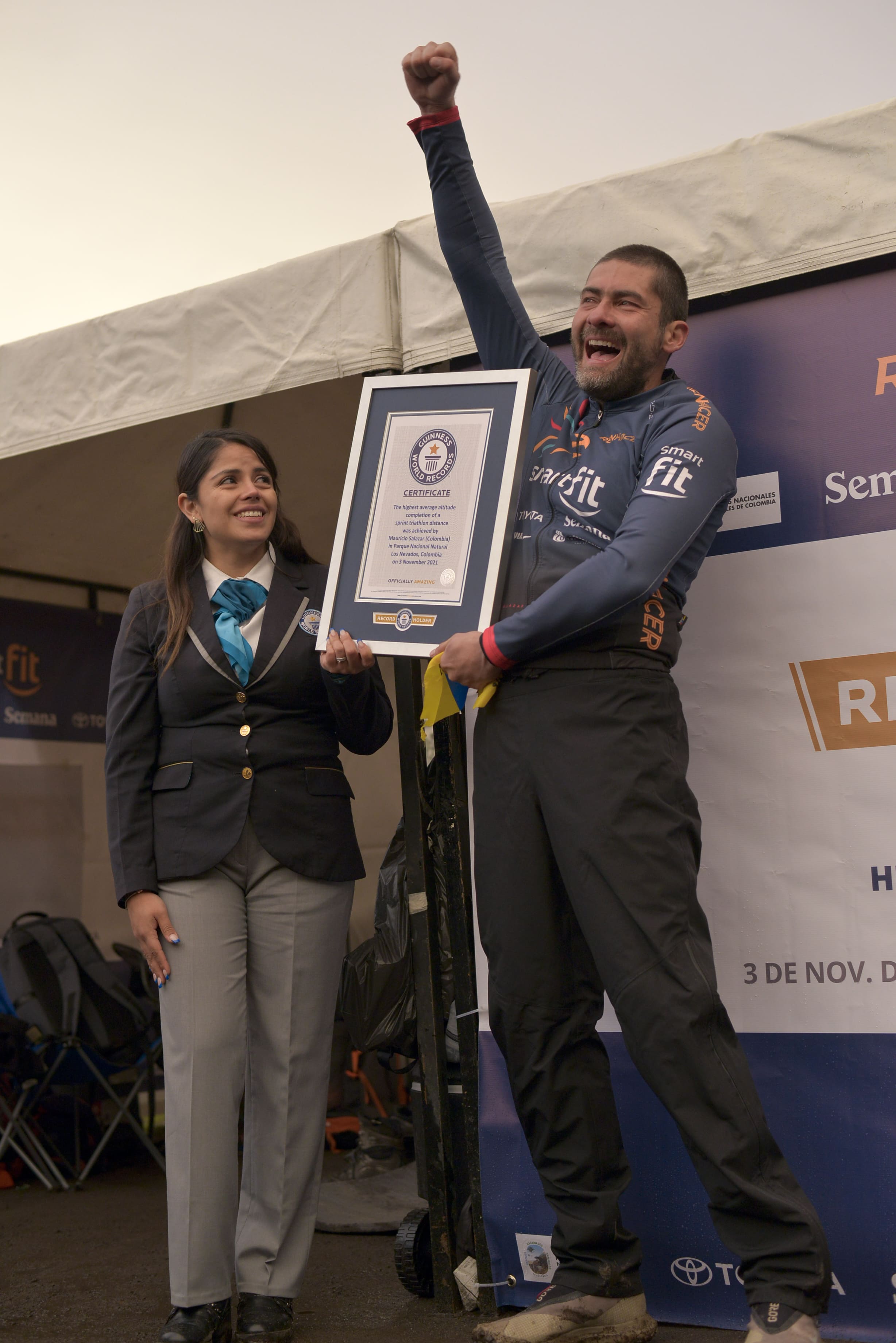 Triatlón spring a mayor altitud promedio en el mundo. 26 km de Triatlón. 750 metros nadando a 4° C en la Laguna del Otún, sin neopreno a 4.000 m.s.n.m. Recorrido en bicicleta de 20 km por encima de los 4.000 ms.n.m. Ascenso de 5.2 km trotando hasta la cumbre del Nevado Santa Isabel a 5.000 m.s.n.m.